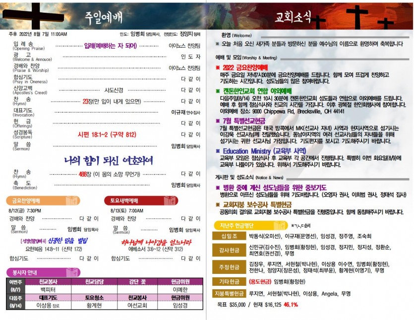 8월 7일 교회소식