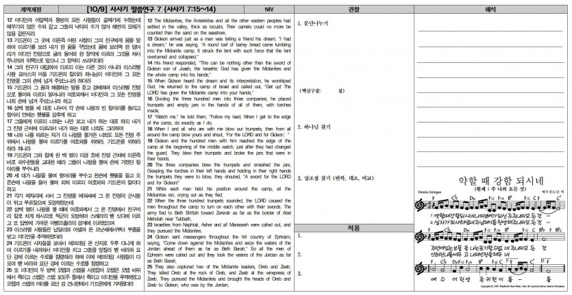 10월 9일 교회소식
