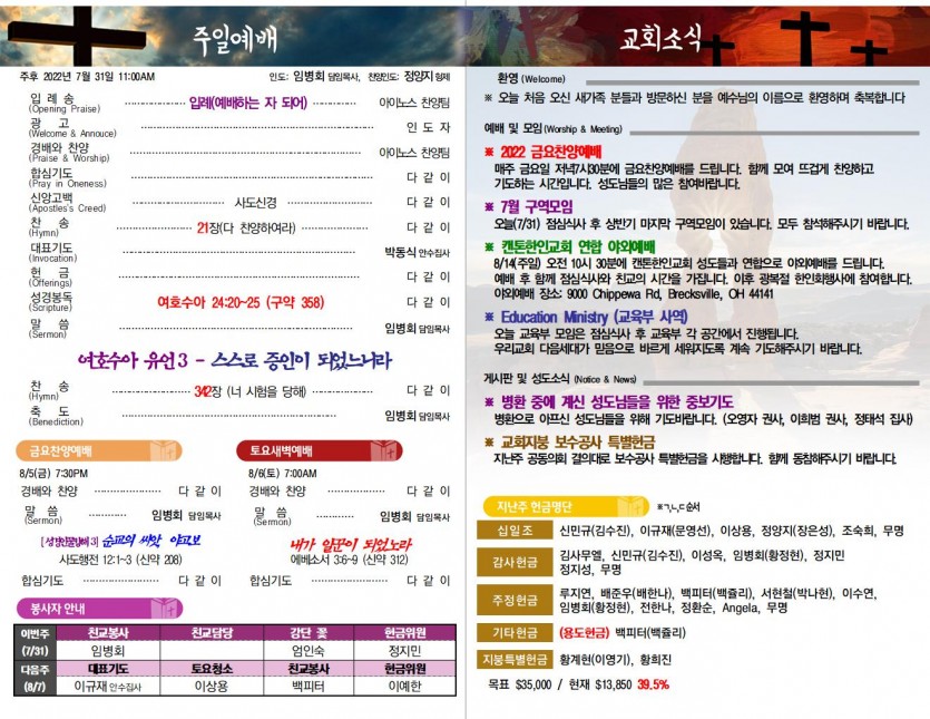 7월 31일 교회소식