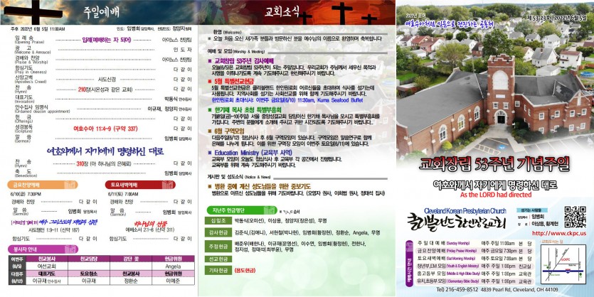 오늘(6/5)은 교회창립 53주년이 되는 주일입니다. 우리교회가 주님께서 세우신 목적과