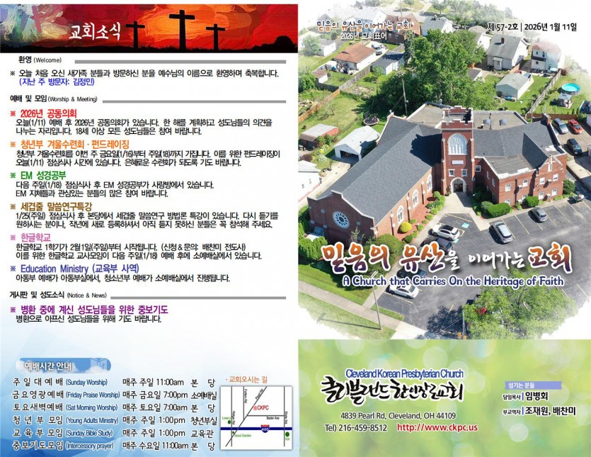 오늘(1/11) 예배 후 2026년 공동의회가 있습니다. 한 해를 계획하고 성도님들의 의견을