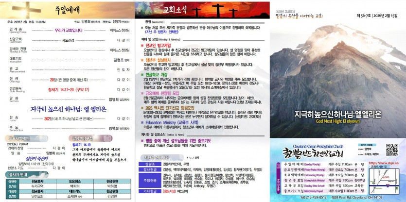 ※ 오늘 처음 오신 새가족 분들과 방문하신 분을 예수님의 이름으로 환영하며 축복합니다.