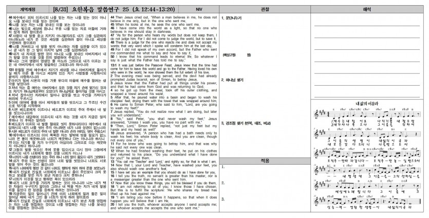 함께 실천함으로, 하나님을 더욱 온전히 예배하는 모든 성도님 되시기 바랍니다.