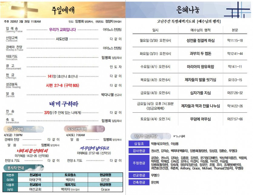 3월 29일 교회소식 (종려주일)