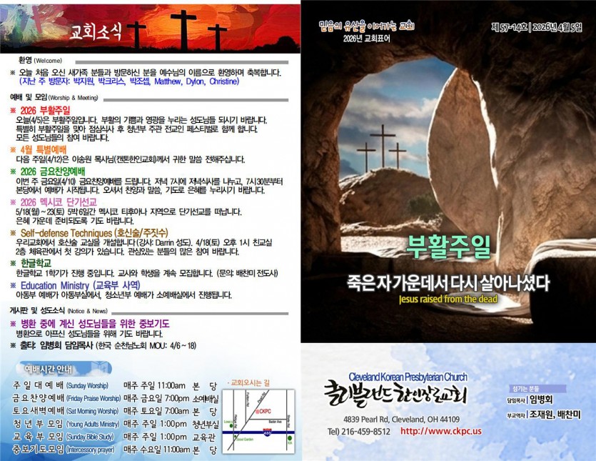 다음 주일(4/12)은 이송원 목사님(캔톤한인교회)께서 귀한 말씀 전해주십니다.